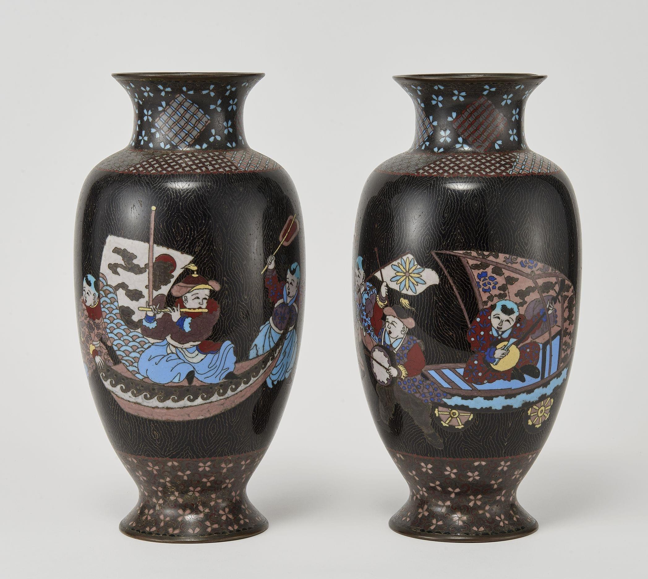 445. Paire de vases en cloisonné, Japon, XIXe s