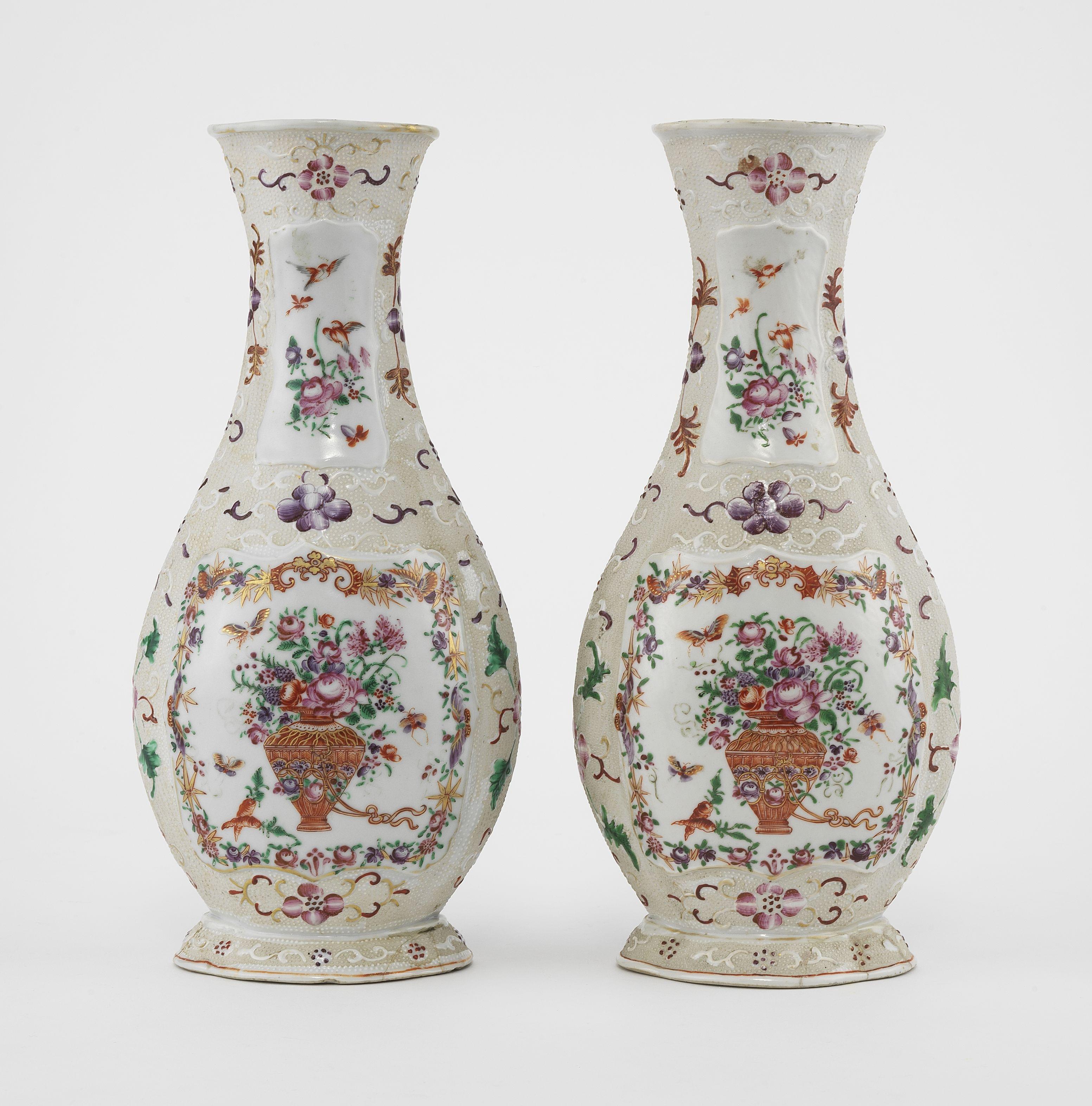 4638. Paire de vases famille rose, compagnie des Indes, Chine, XIXe s