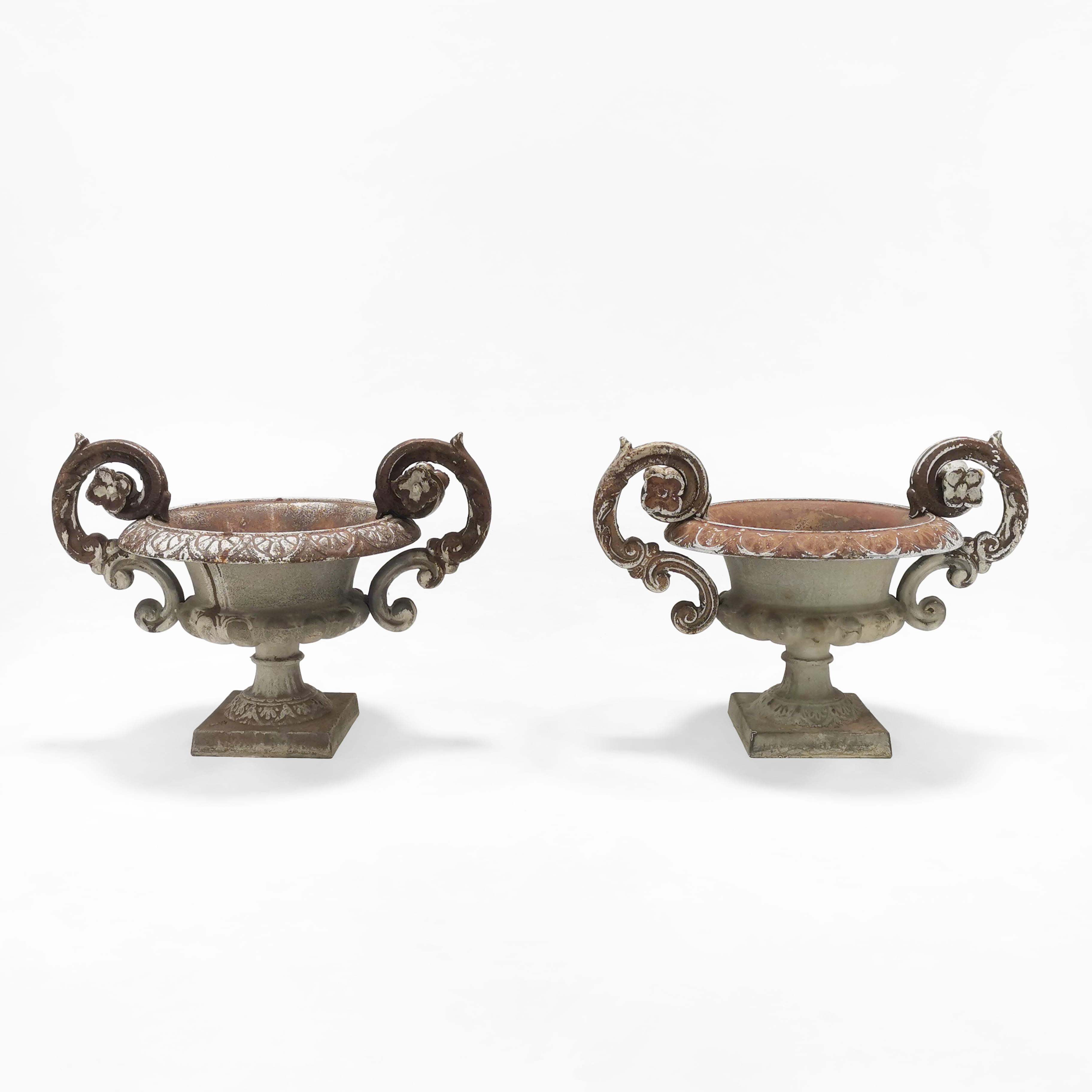 1. Paire de flambeaux à décor repoussé de larges fleurs et acanthes