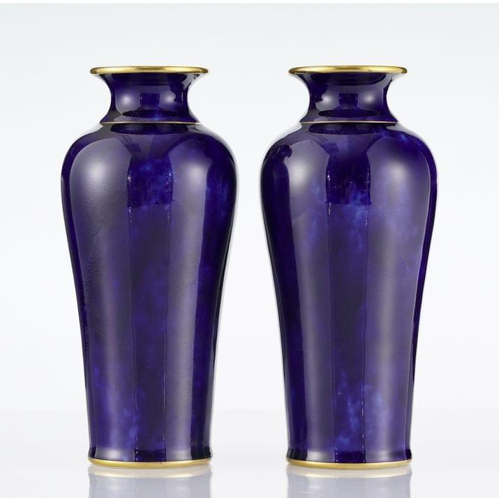 Porcelaine émaillée bleu nuit à filets dorés, H 20 cm