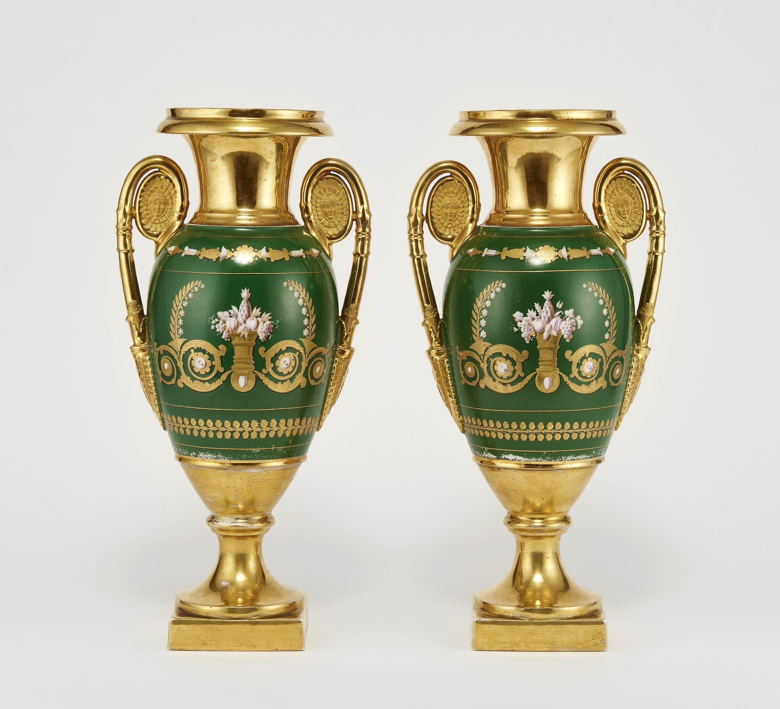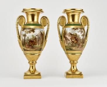 433. Paire de vases urne néoclassiques à décor de biches
