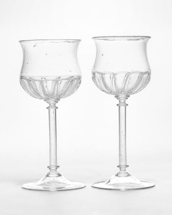 402. Paire de verres sur pied à motif de godrons et pailleté d'or sur la lèvre