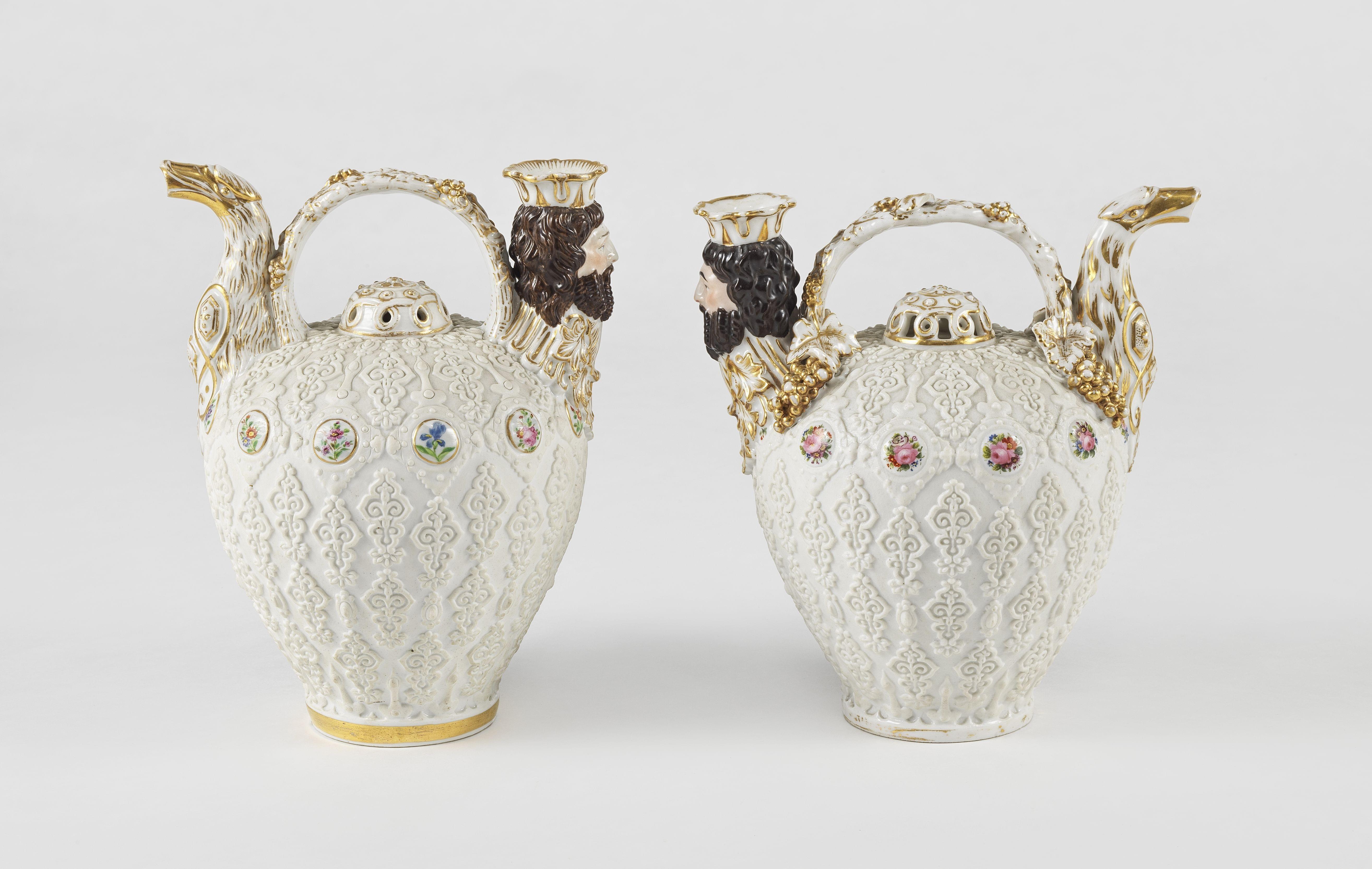 433. Paire de verseuses à tête d'homme barbu par Jacob petit, milieu XIXe s
