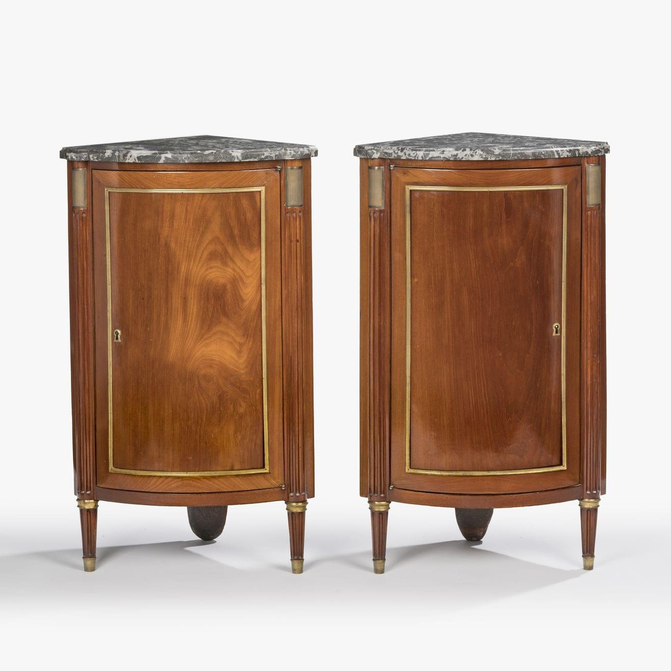 Un vantail, montants en colonne cannelés, acajou, marbre gris, bronze doré, 92x53x37 cm