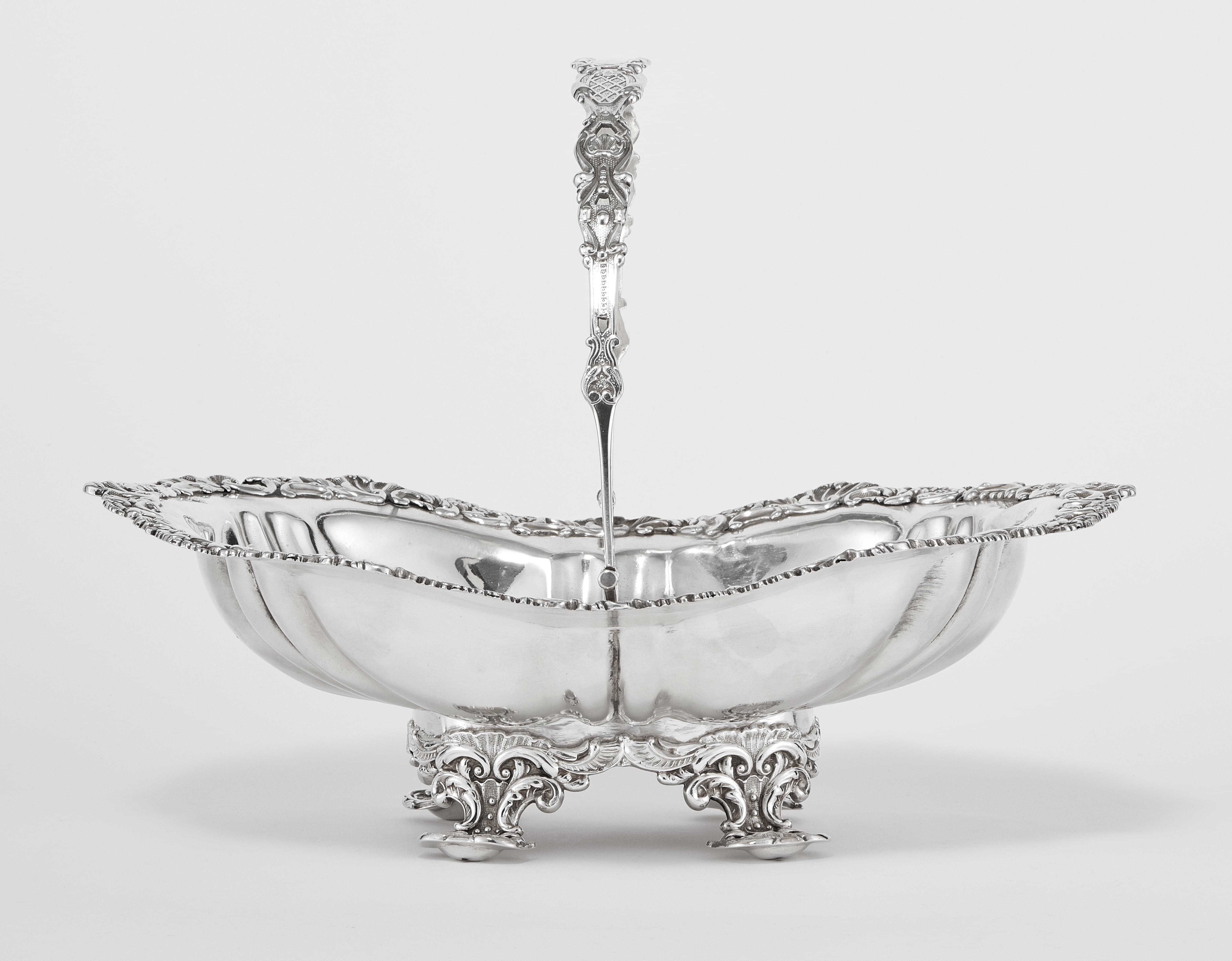 512. Grand bol à punch couvert de style Rocaille et louche assortie,...