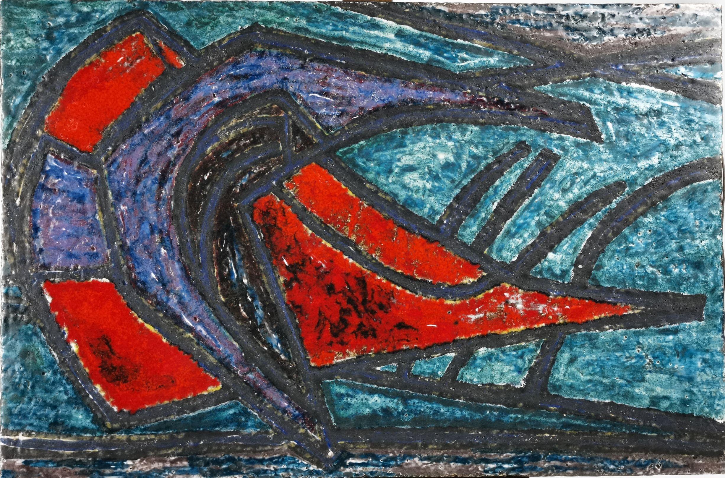 Verre multicouche dégagé à l'acide à décor de fleurs mauves sur...