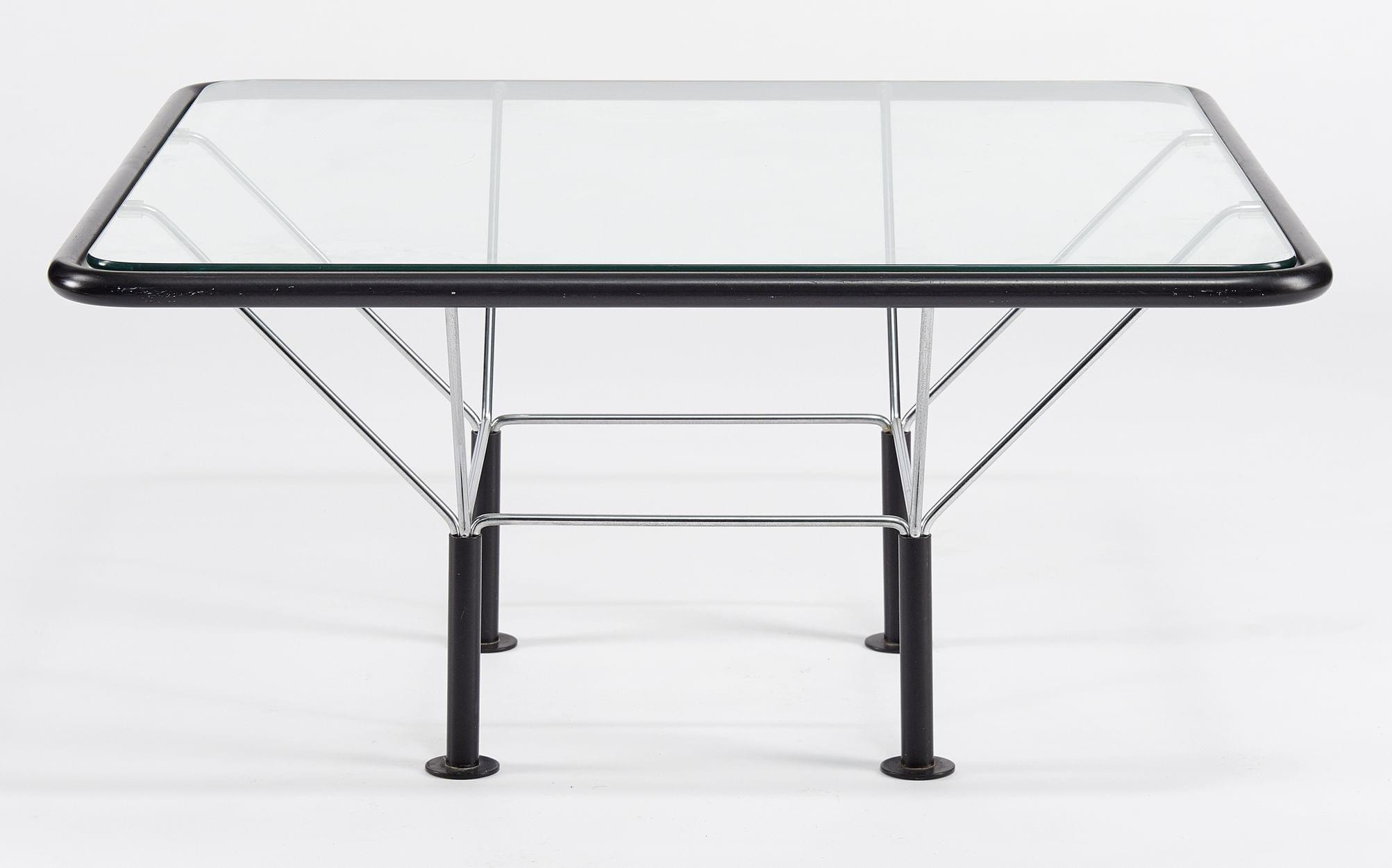 Table basse, métal laqué noir et chromé et verre, 42x80x80 cm