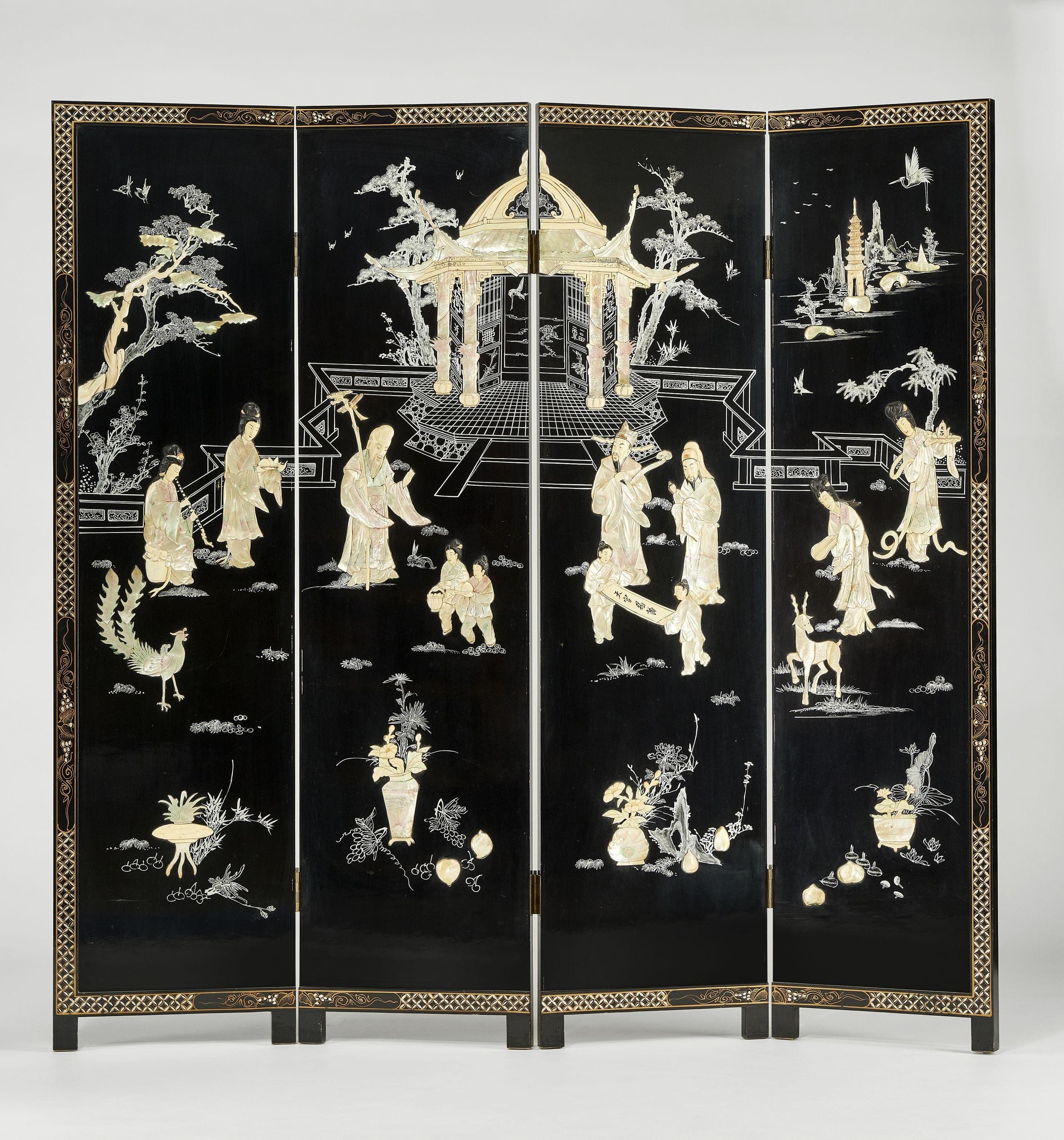 Papier lithographié et rehaussé, piètement en bois tourné, H 59...