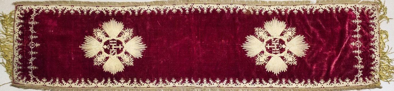 Velours brodé de fils d'or et d'argent, XVIIIe s, 214x62 cm