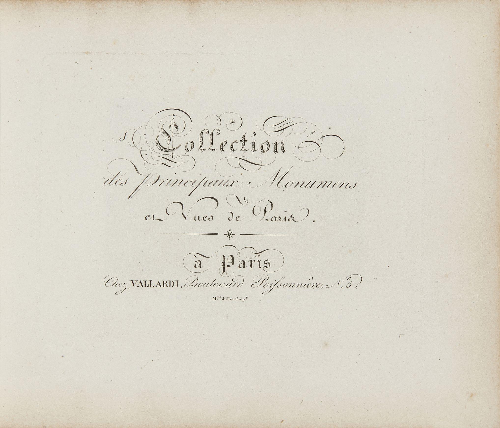 337. PARIS. Collection des Principaux Monuments et Vues de Paris, Paris, Vallardi, s.d. (vers 1830);