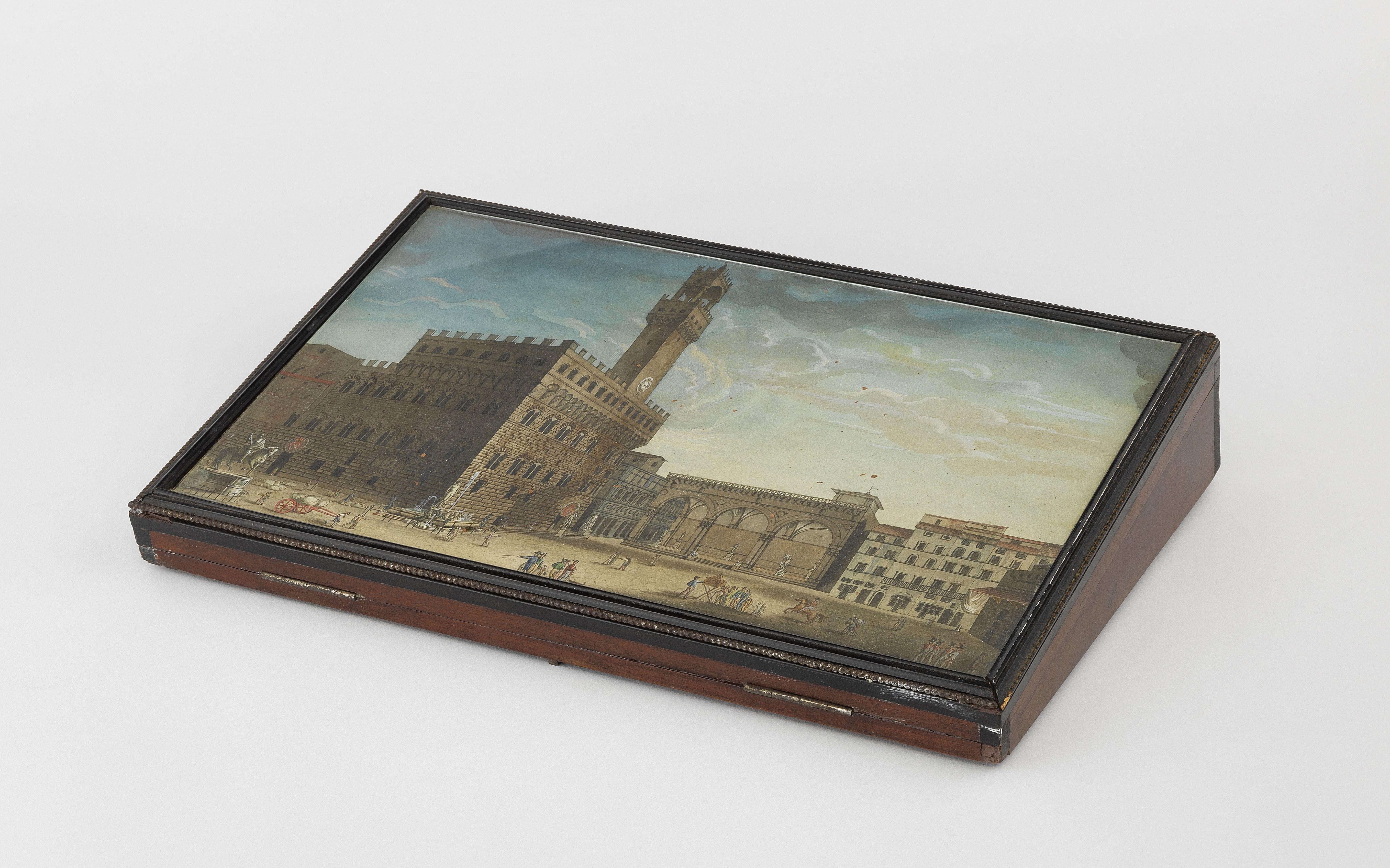 4020. Partie de coffret formant écritoire à décor de la place de la Seigneurie à Florence, milieu XIXe s