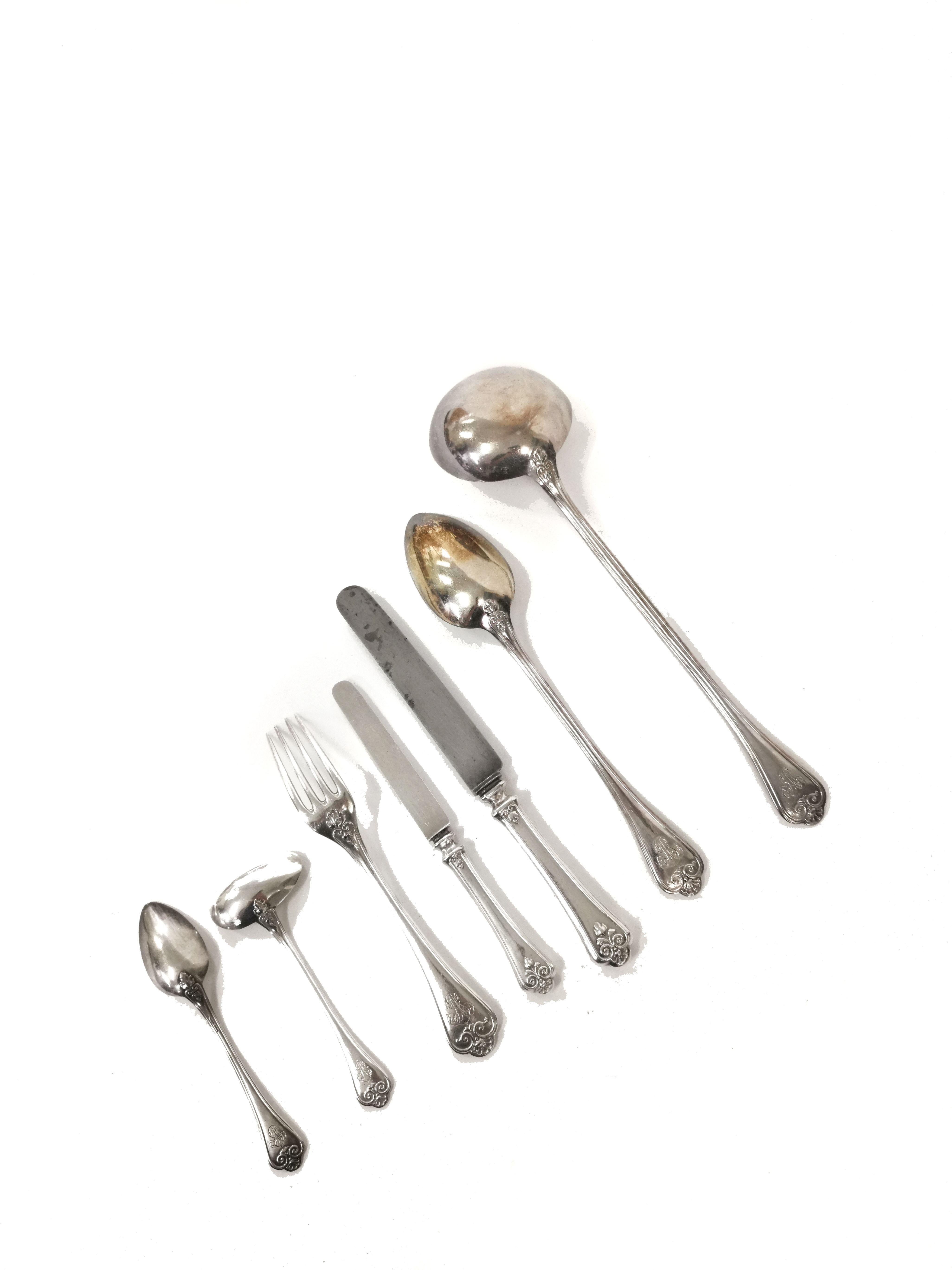 Pierre Quielle, France, argent, comprenant: 14 fourchettes, 6 cuillères à thé, 3 pièces de service, 1920 g