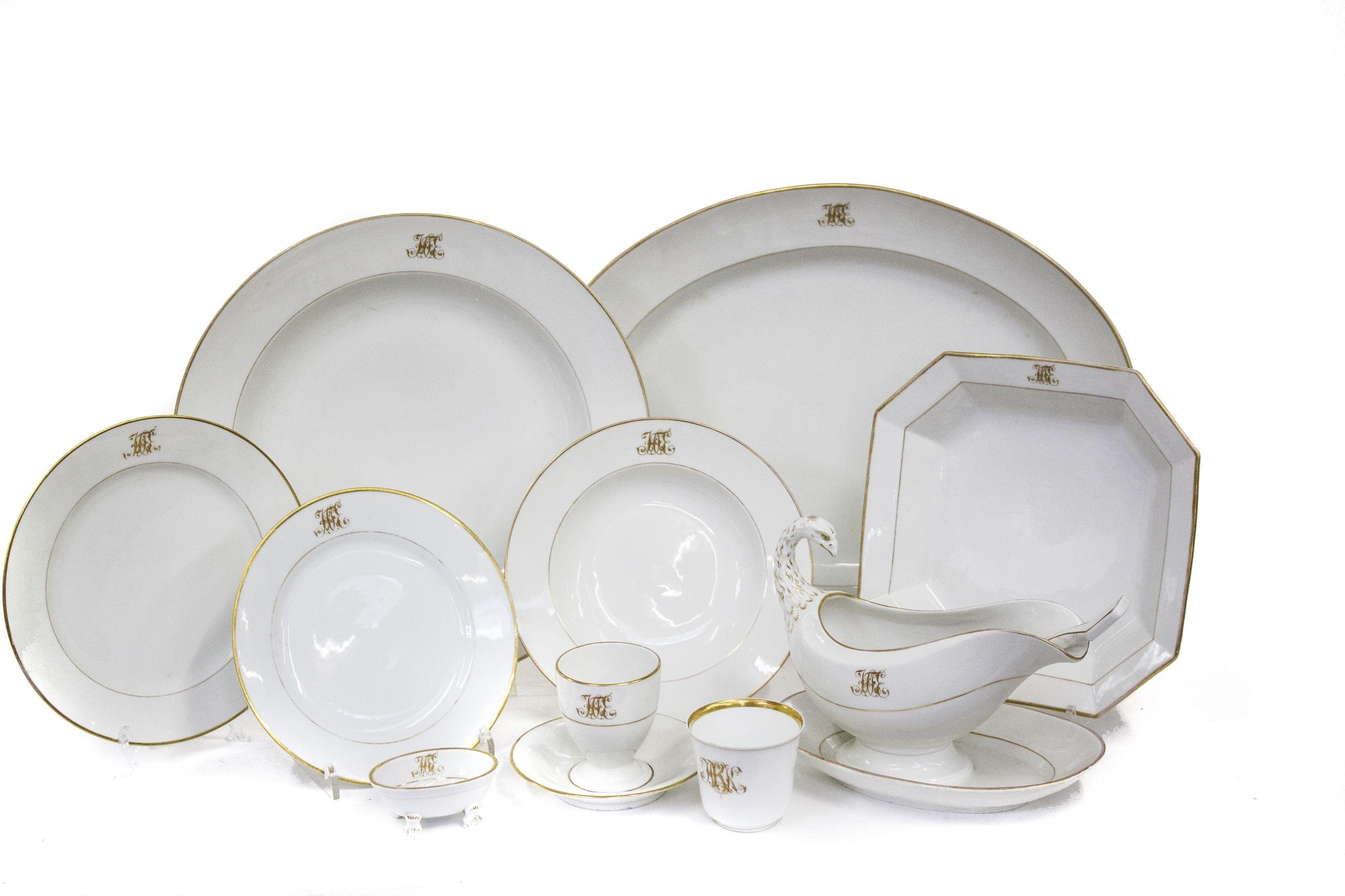 Paris, XIXe s, porcelaine, comprenant: 22 assiettes à dîner et 3...