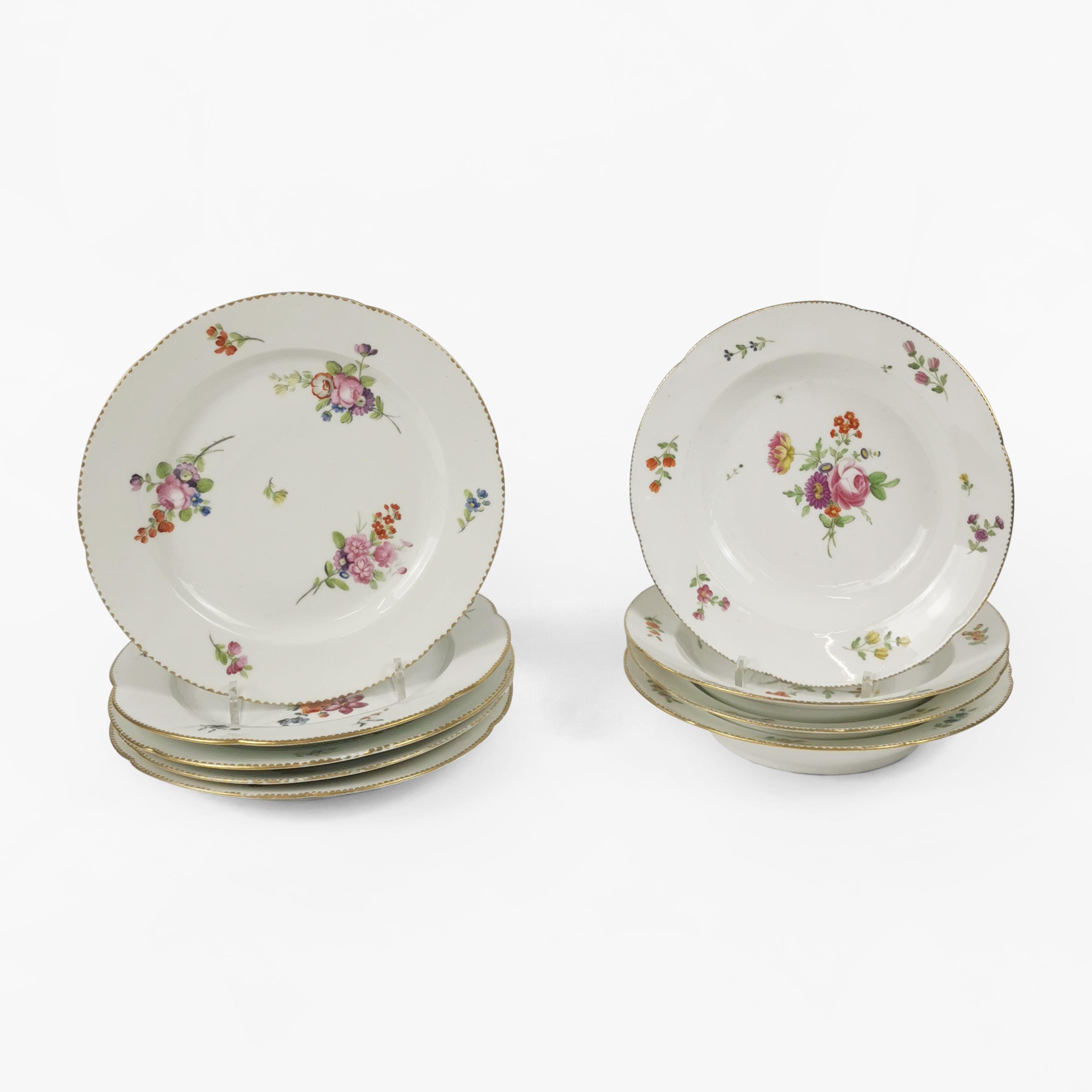Porte une marque de Meissen XXe s, porcelaine, comprenant: 18 assiettes plates et 6 creuses (24p)
