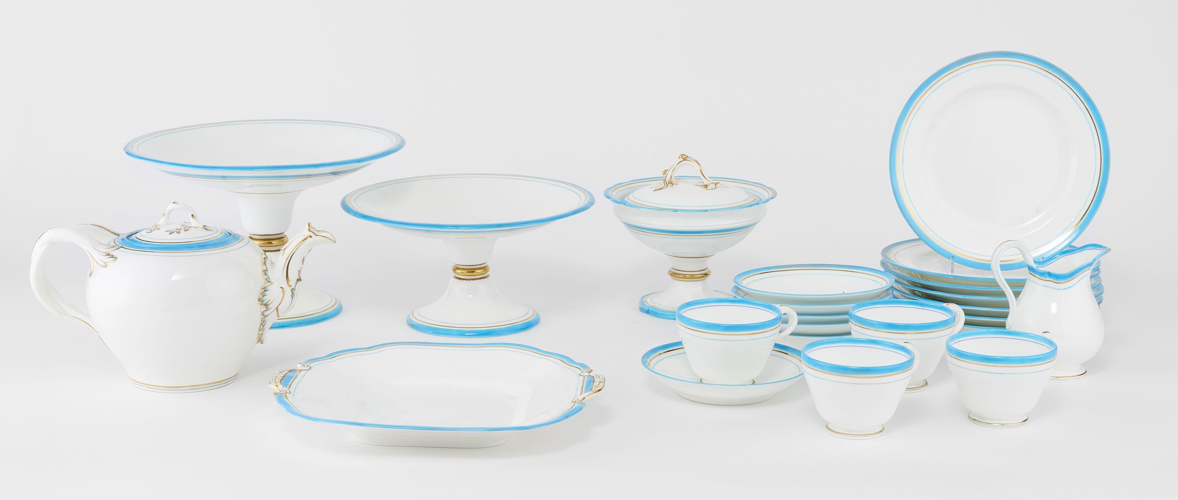 Carouge, circa 1820, faïence, comprenant: soupière, sucrier, vas...