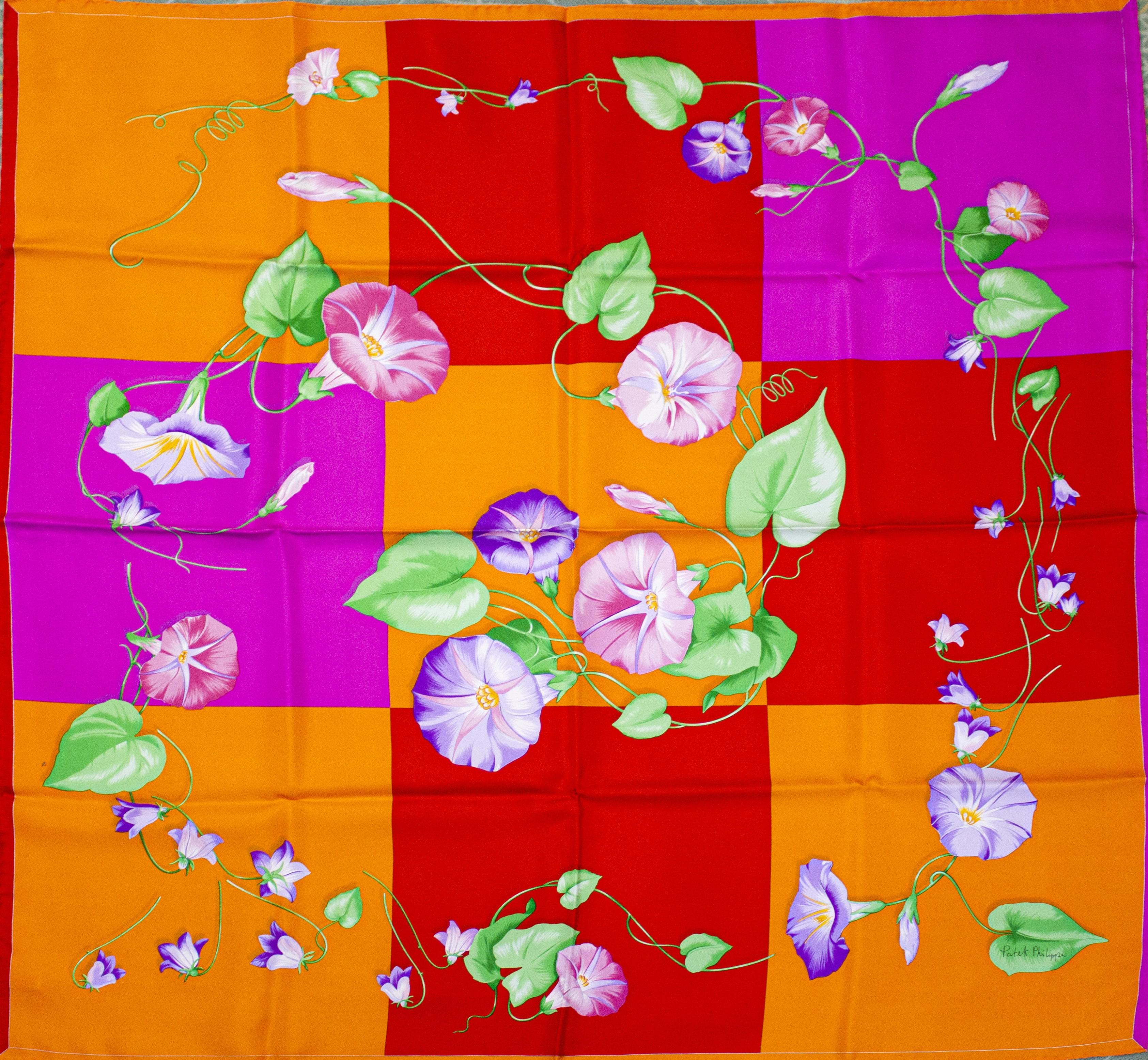 3001. Patek Philippe, foulard à décor de fleurs sur fond violet, rouge et orange