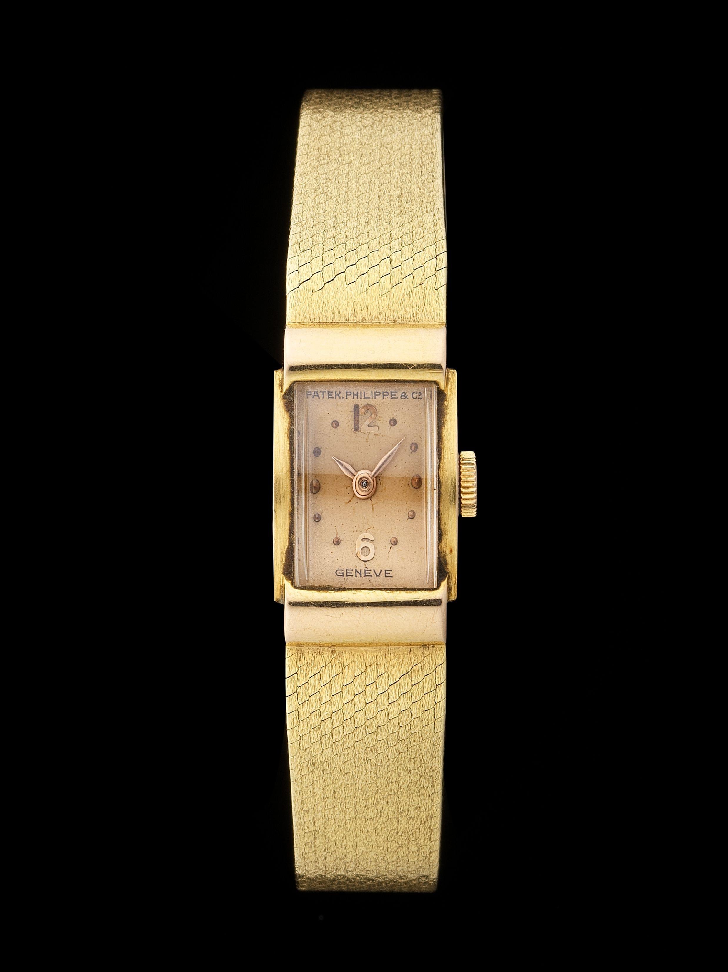 Cadran doré, aiguilles et index bâtons noirs, couronne sertie d'...