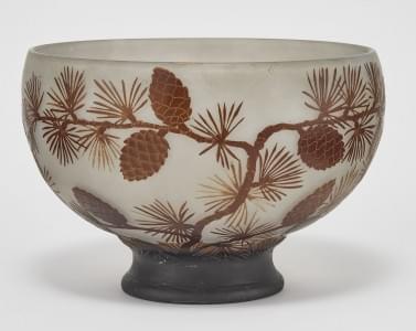 Verre multicouche dégagé à l'acide à décor de branches de pins b...