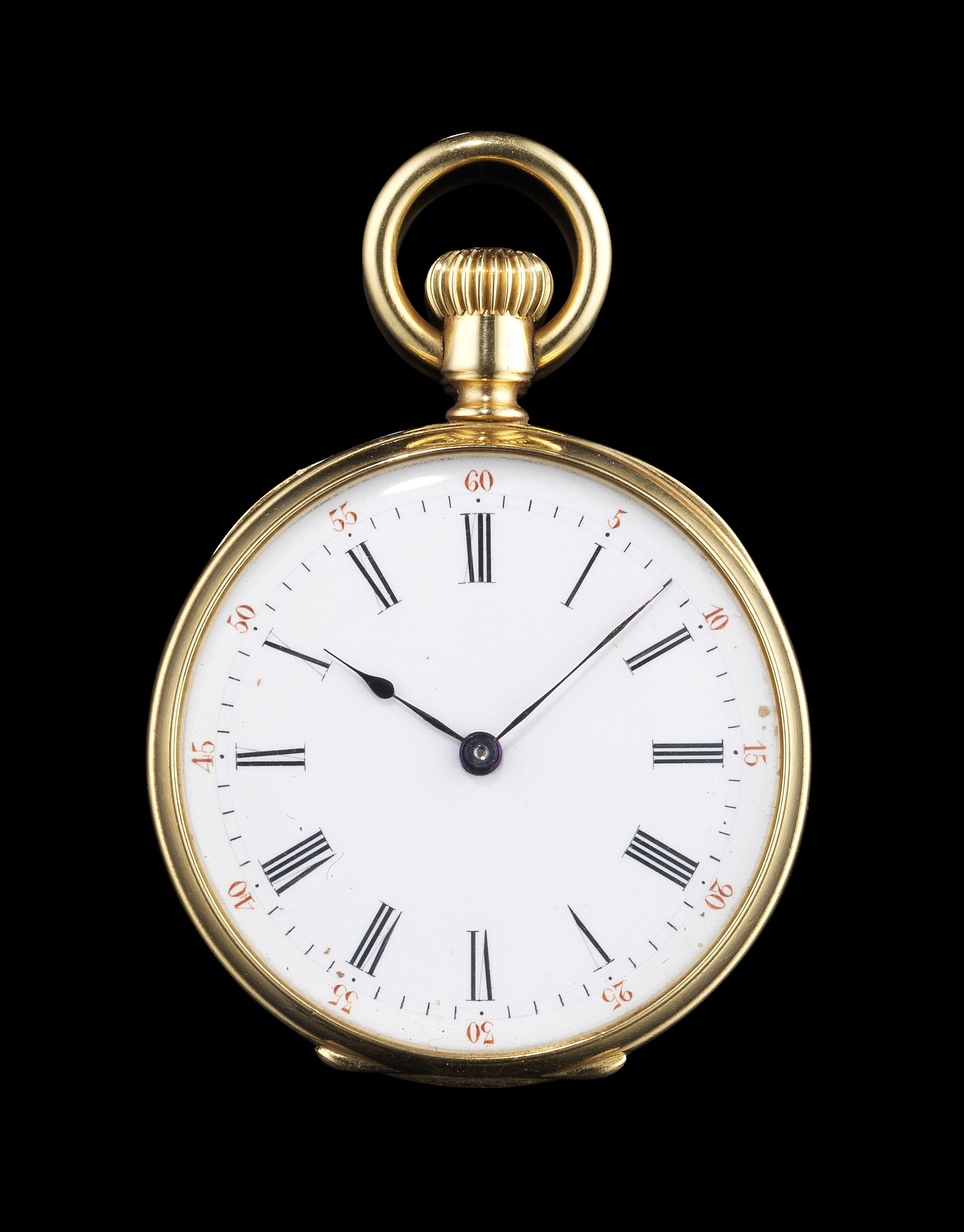Cadran blanc, chiffres romains noirs, 1867, or 750, D 35 mm, poids brut 40 g, avec son extrait des registres