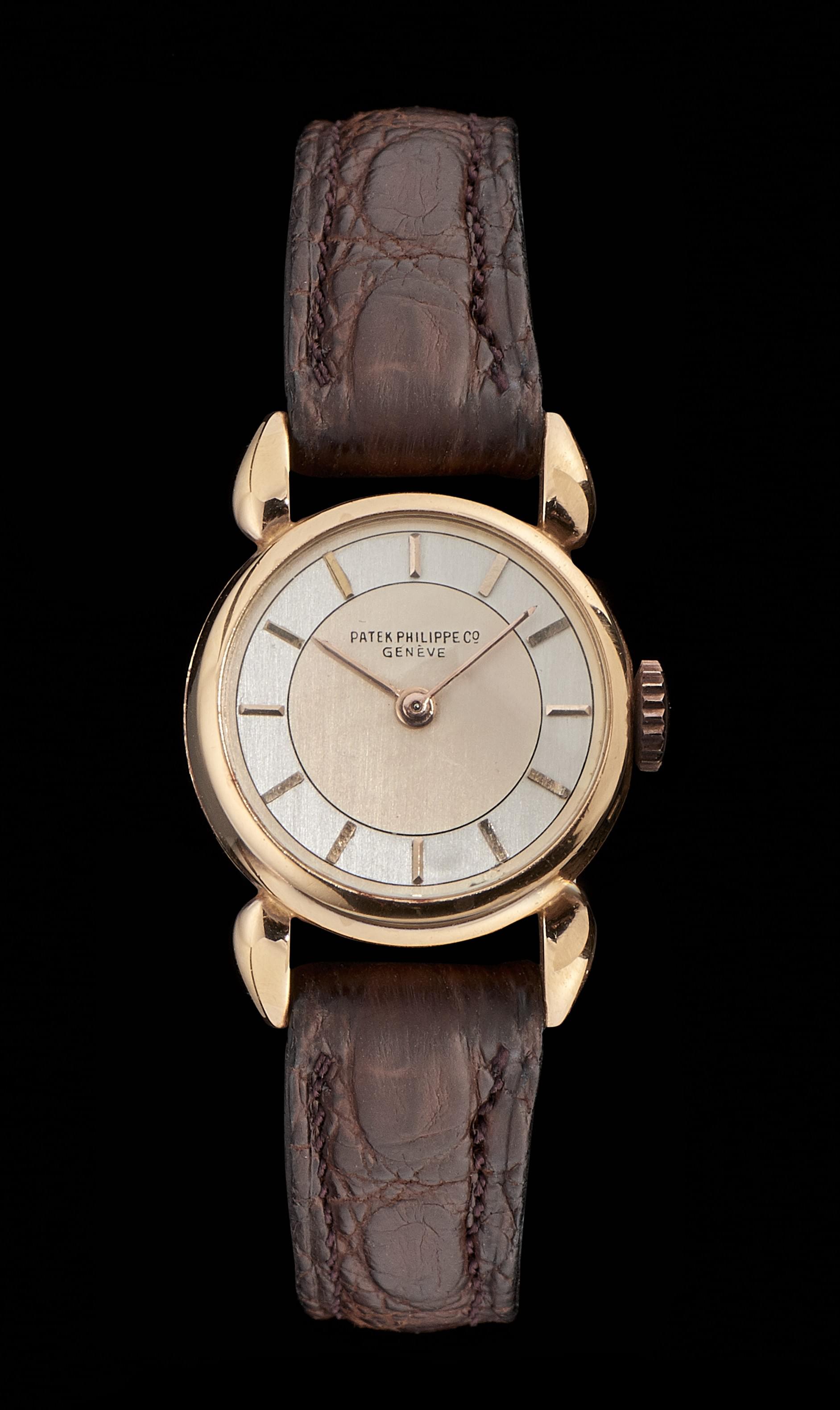 Cadran argenté, index bâtons dorés, aiguilles rosées, réf. 1093, 1948, or rose 750, D 20 mm, avec son extrait des registres