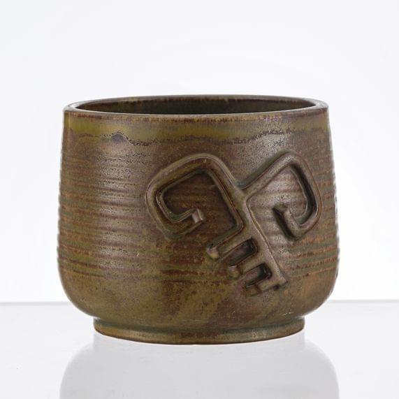 Cache-pot à décor d'une clé stylisée, grès brun, signé Bonifas et numéroté 76, H 12 cm.
