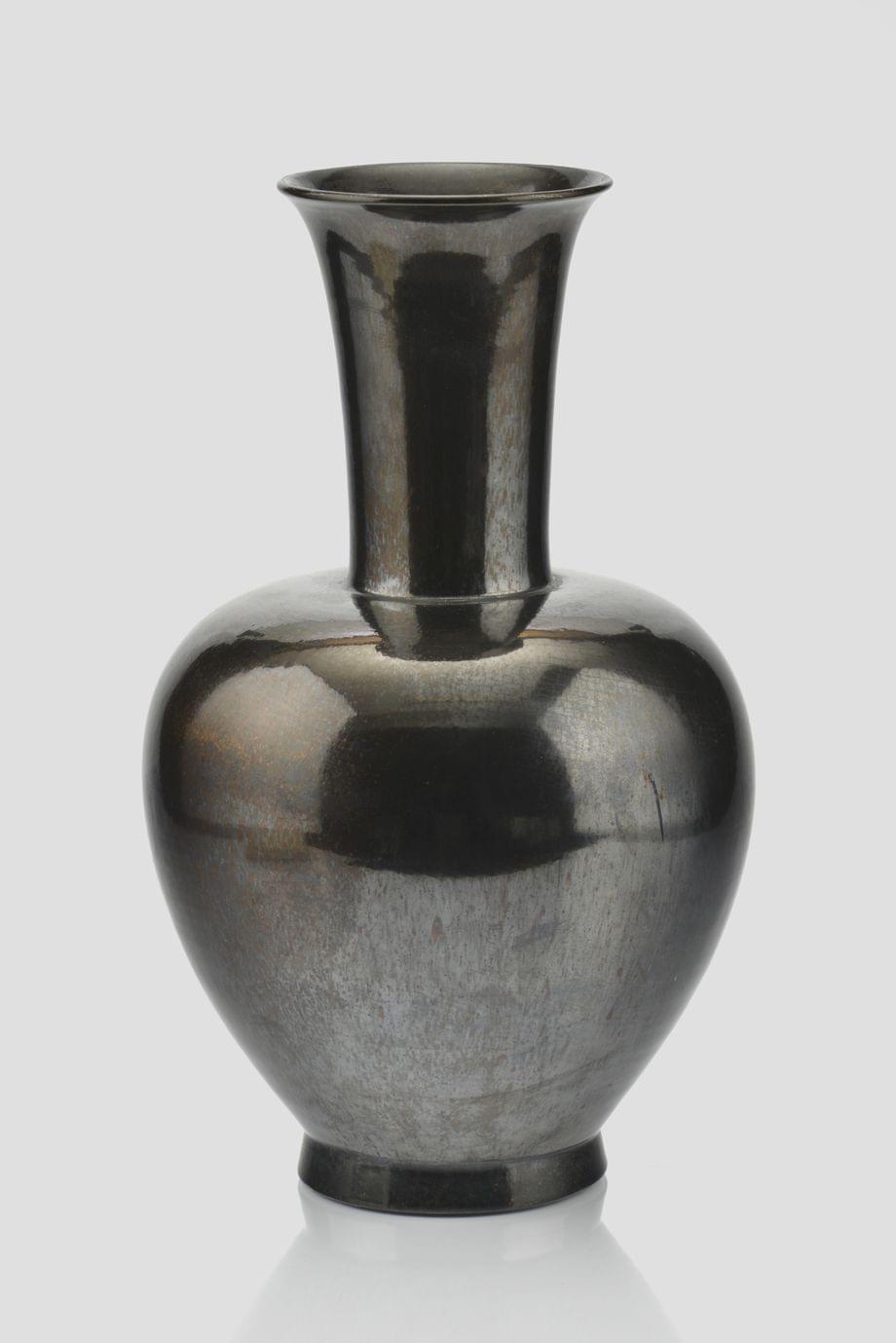 Vase sur pied, panse à gouttières latérales, faïence recouverte...