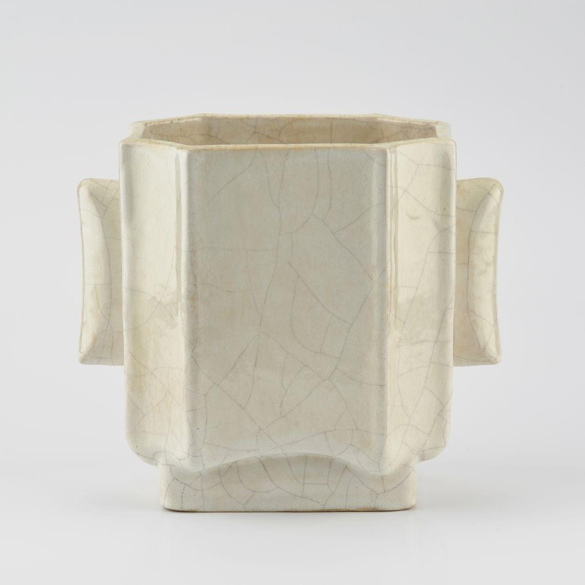 Coupe sur talon, faïence recouverte d'émail blanc craquelé, anse...