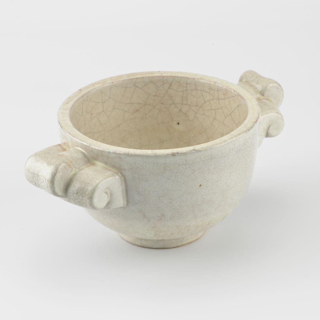 Paire de cache-pots cannelés, faïence recouverte d'émail blanc c...