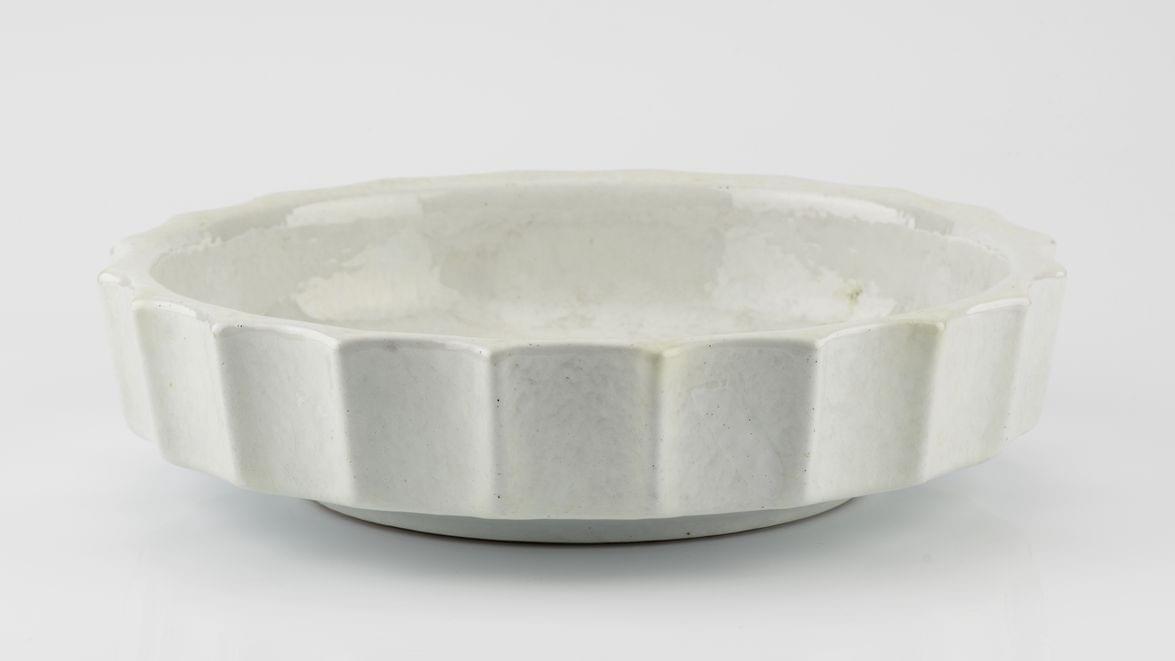 Coupe sur talon, faïence recouverte d'émail blanc craquelé, anse...