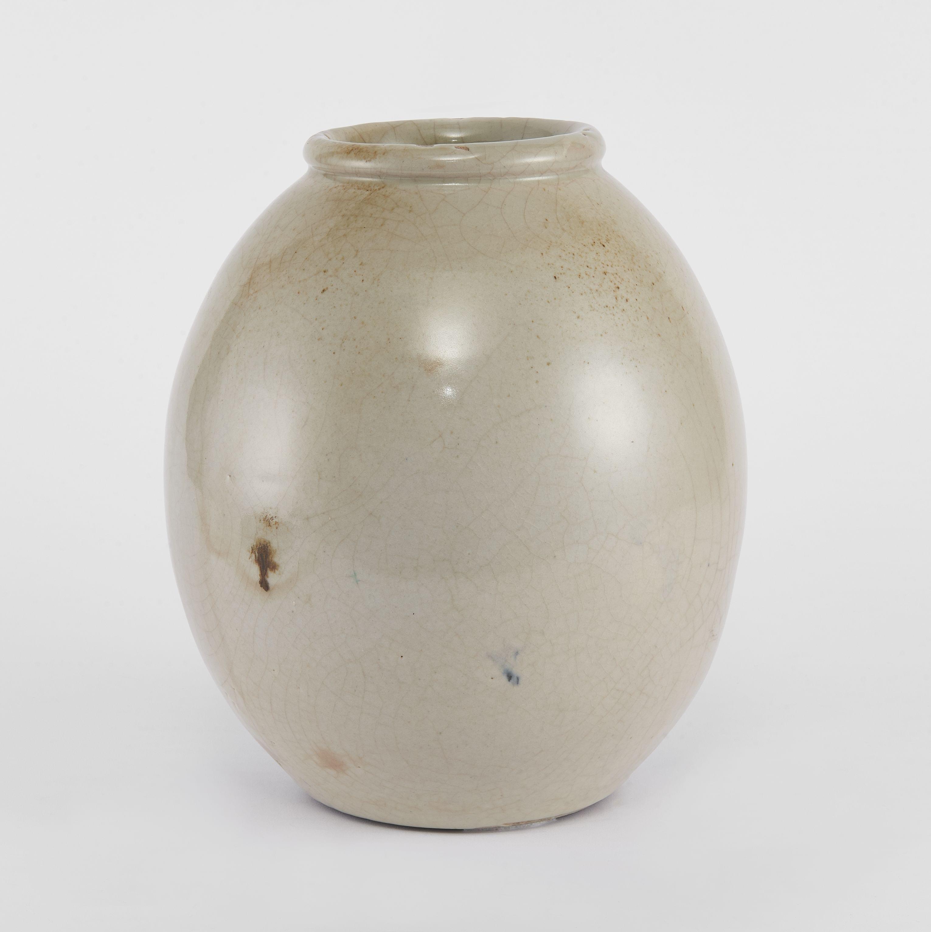Vase ovoïde, céramique émaillée ivoire craquelée, signé Bonifas et numéroté 142, H 26 cm