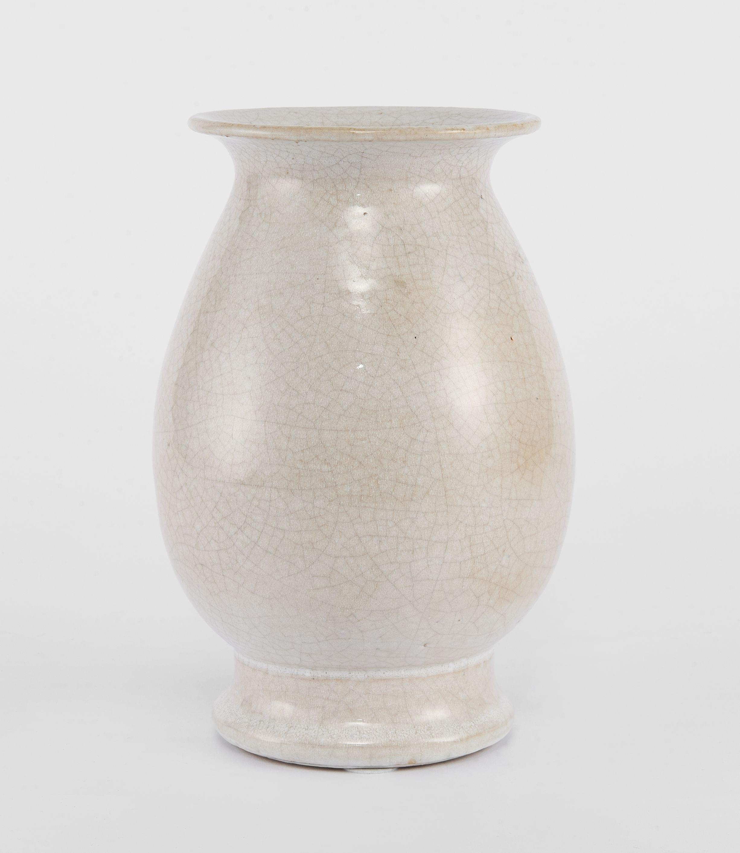 Vase ovoïde, céramique émaillée ivoire craquelée, signé Bonifas, H 20 cm