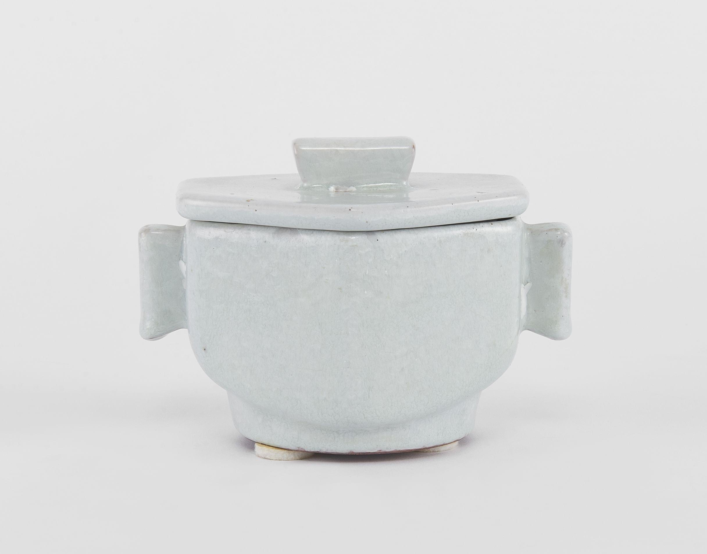 Petite boîte, céramique émaillée céladon clair, signée Boas et numérotée 753, L 28 cm