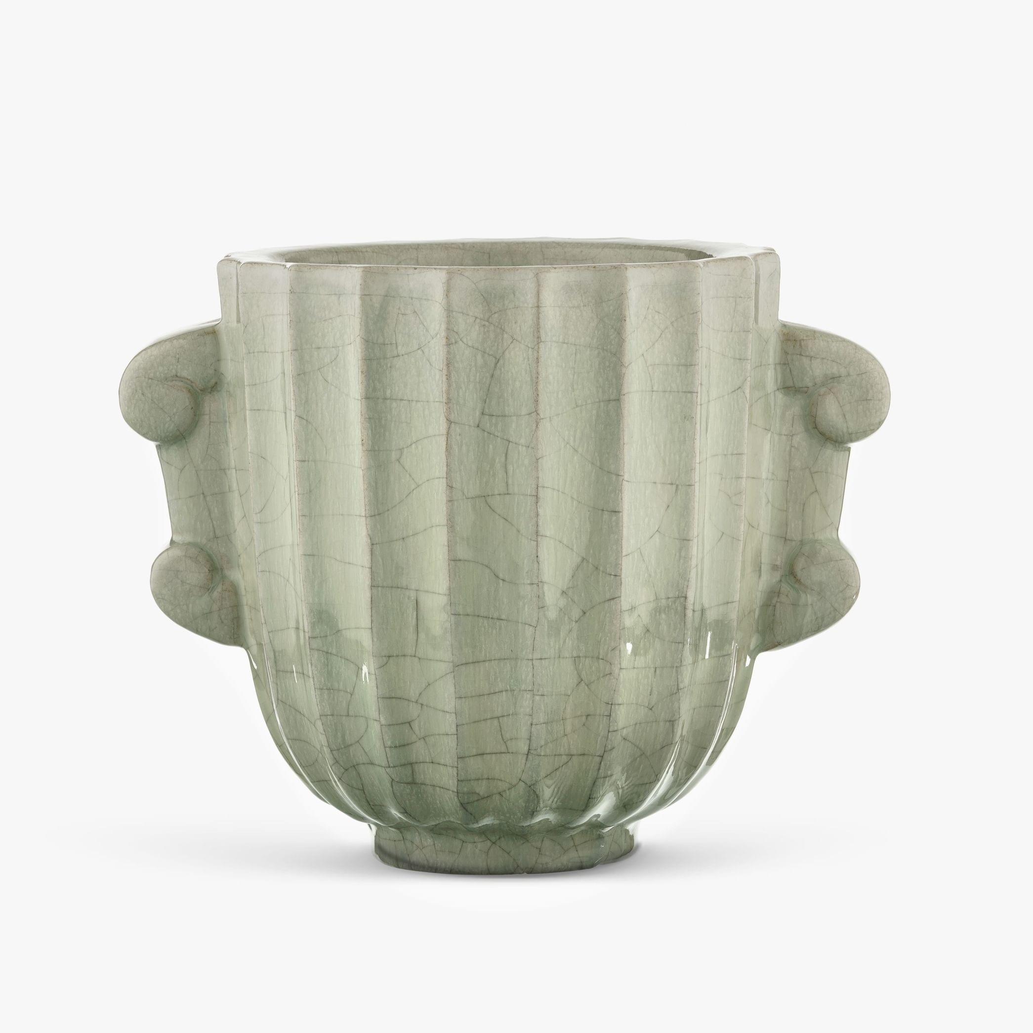 Vase Art Déco, céramique céladon, signée, située et datée "Pour Paris 1937", H 23 cm