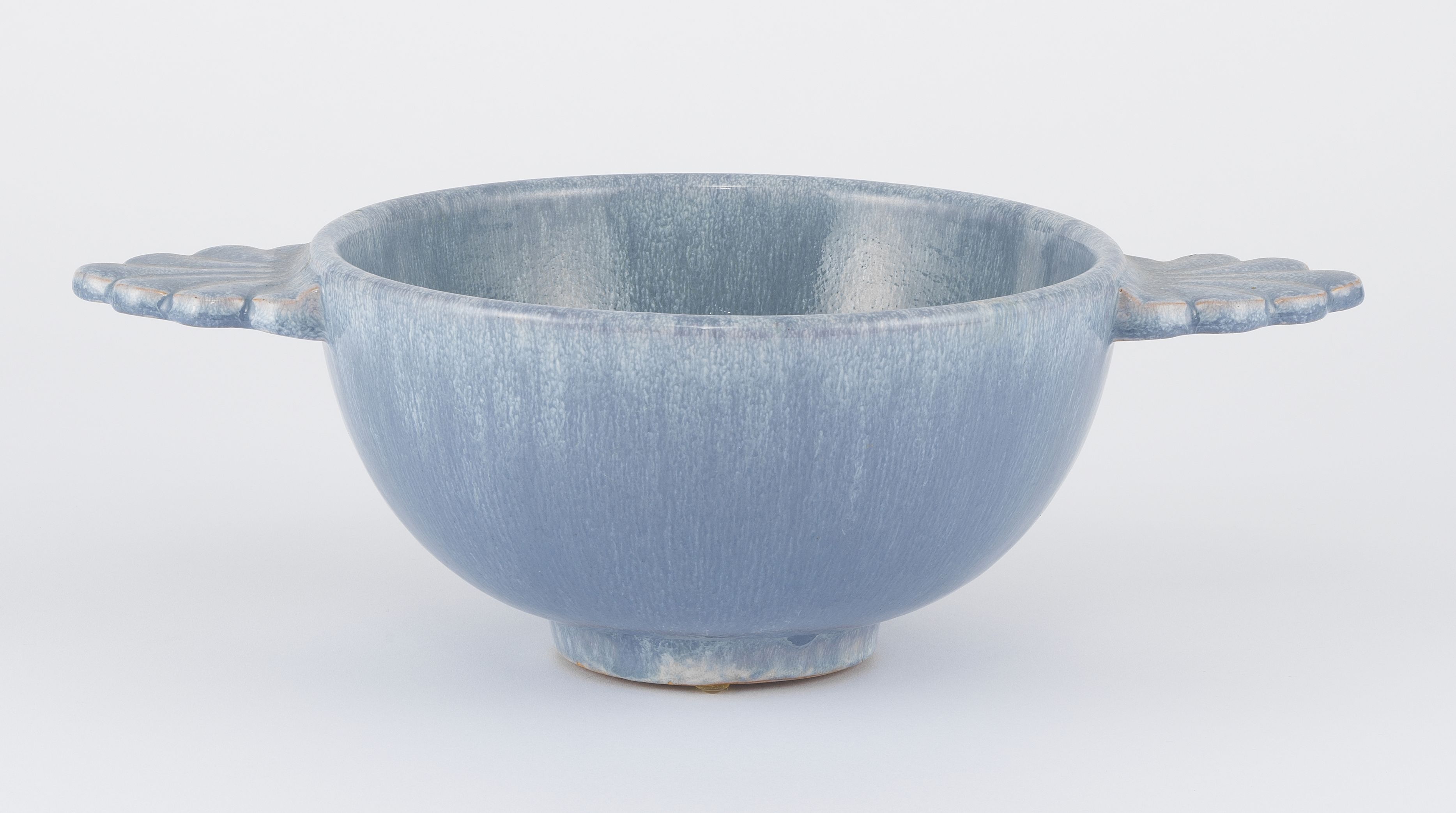 Bol à anses bleu, céramique, signée Boas , D 30 cm