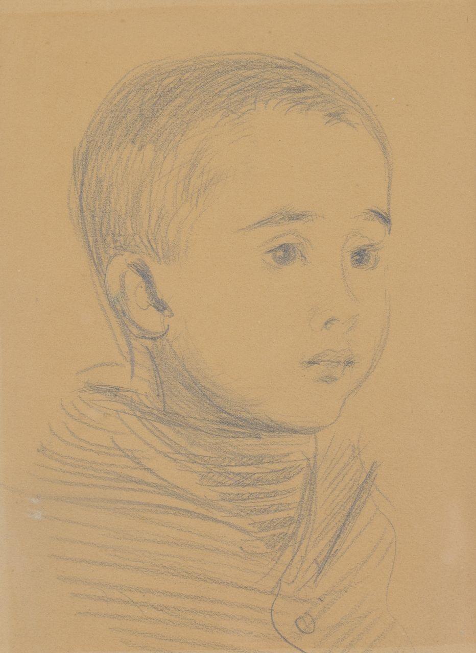 Etude de portrait de famille, pointe sèche sur papier, signée, 4...