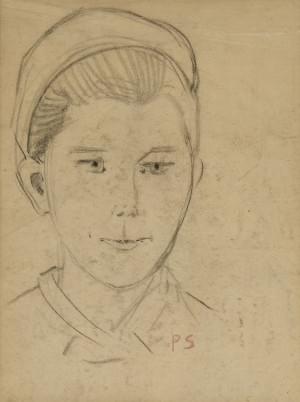 Portrait d'un enfant à la coiffe de travail, crayon sur papier,...