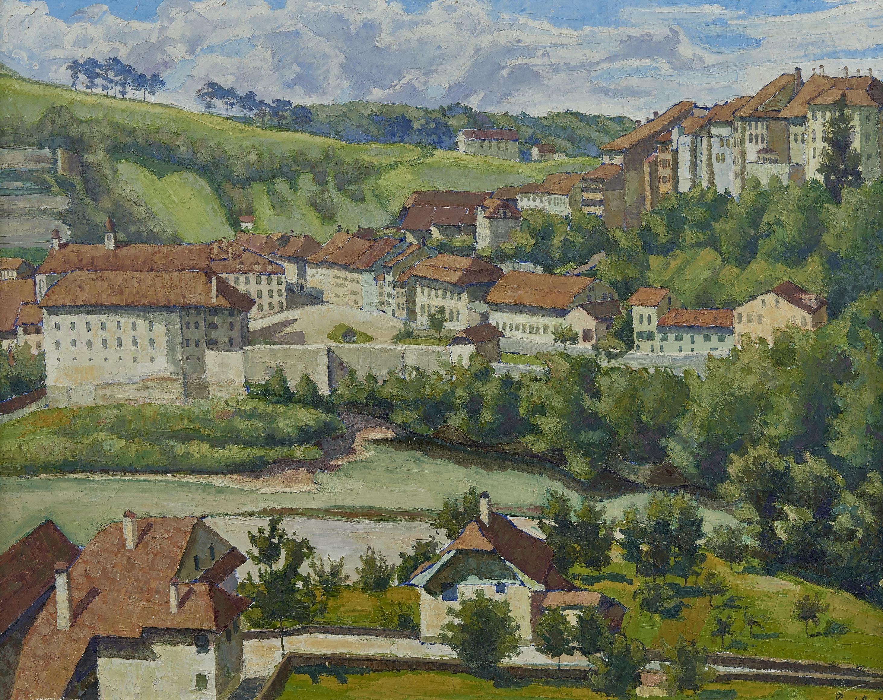 Vue sur Fribourg, huile sur toile, 65x83 cm
