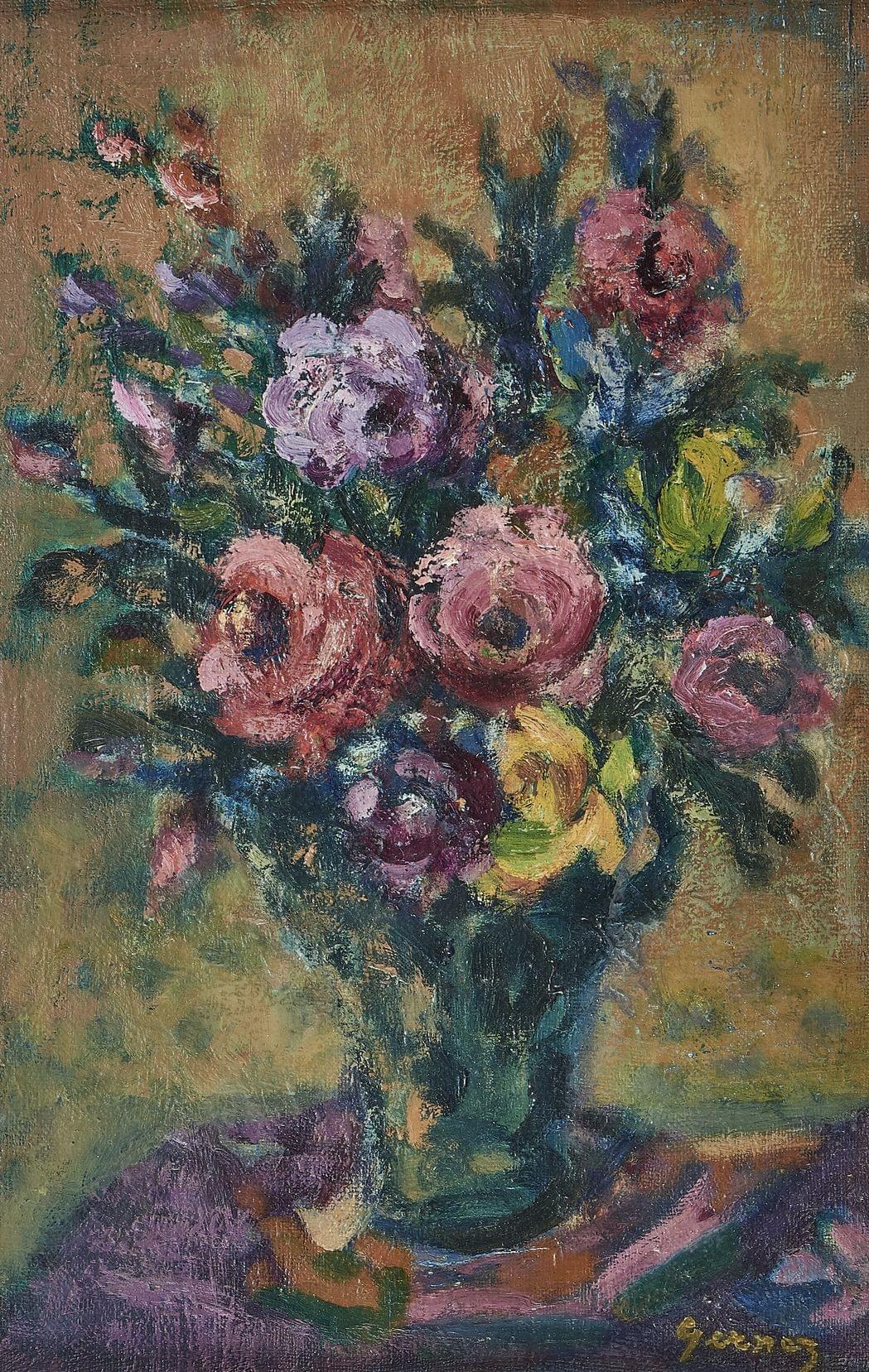 Bouquet de fleurs, huile sur toile, signée, 31x21 cm