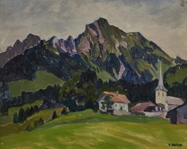 Estavannens-Dessus, huile sur carton, signée, 39x47 cm