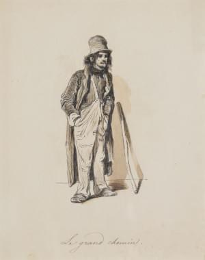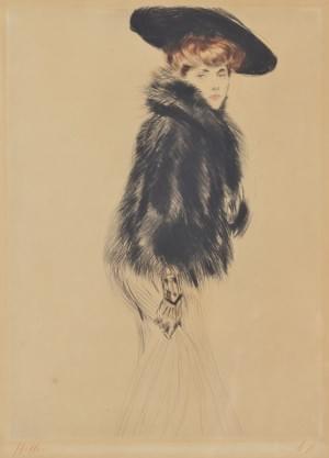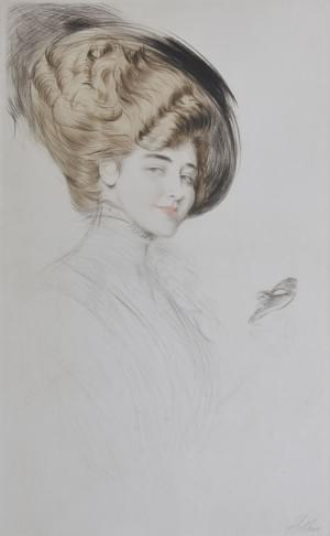 Elégante au masque de carnaval, pointe sèche sur papier, signée,...