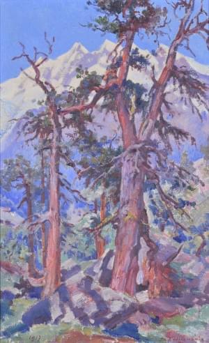 Les Mishabel au-dessus de Saas Fee, Valais, huile sur toile, sig...