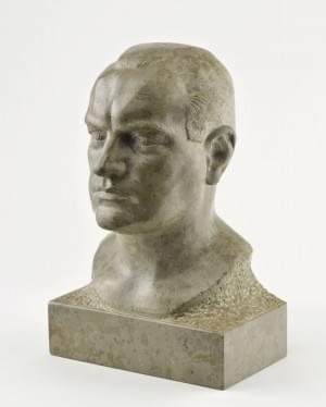 Buste d'homme, pierre sculptée, signé, H 44 cm