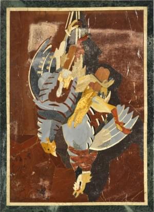 Deux marqueteries de marbre, l'une à décor de cervidés, l'autre...