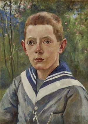 Garçon en costume de marin, huile sur toile, signée, 37x27 cm