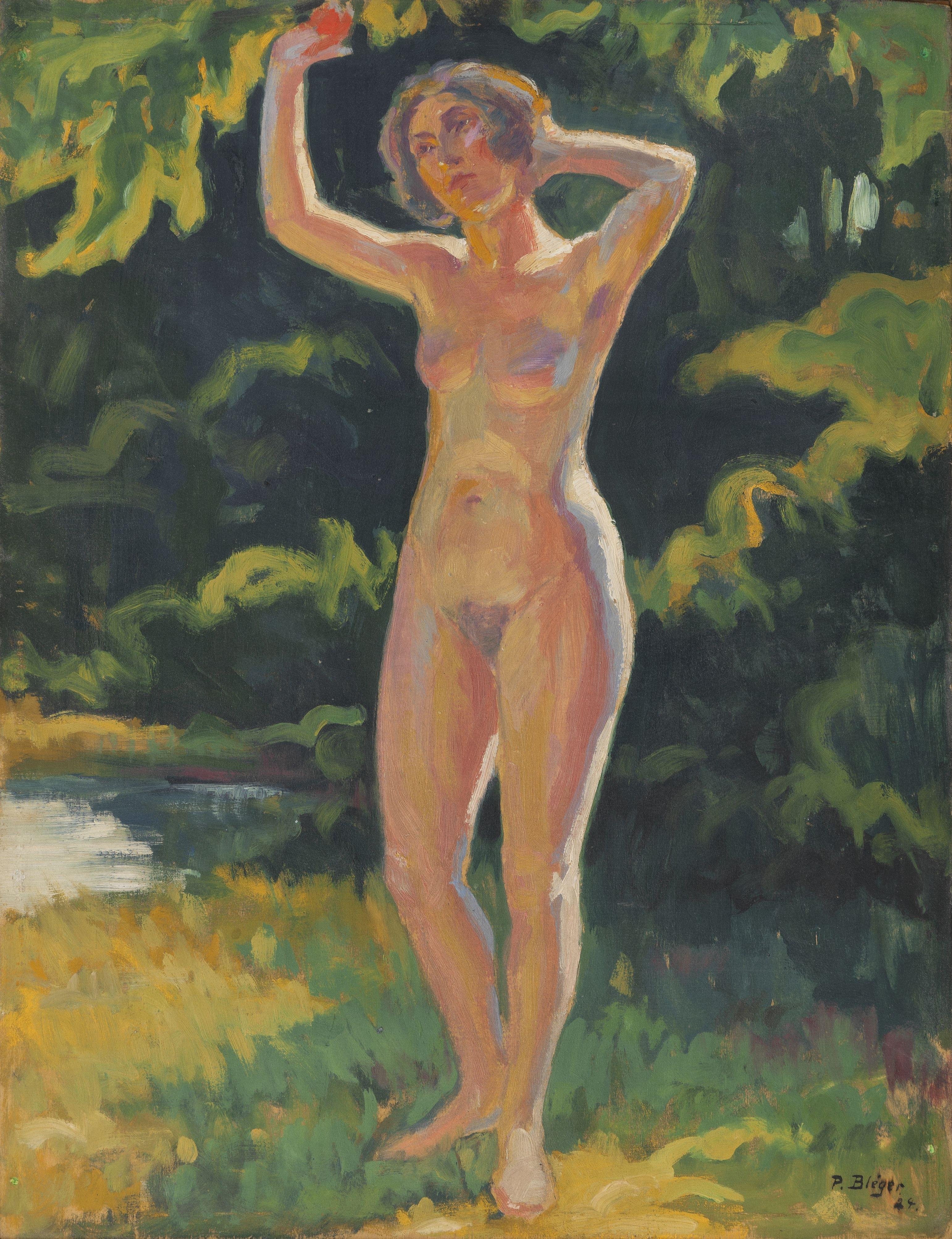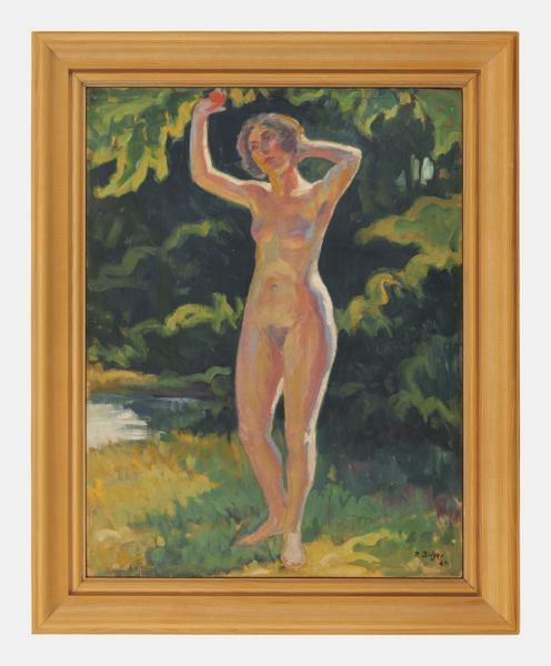 Léopard aux aguets, huile sur toile, signée, 24,5x35,5 cmProvena...