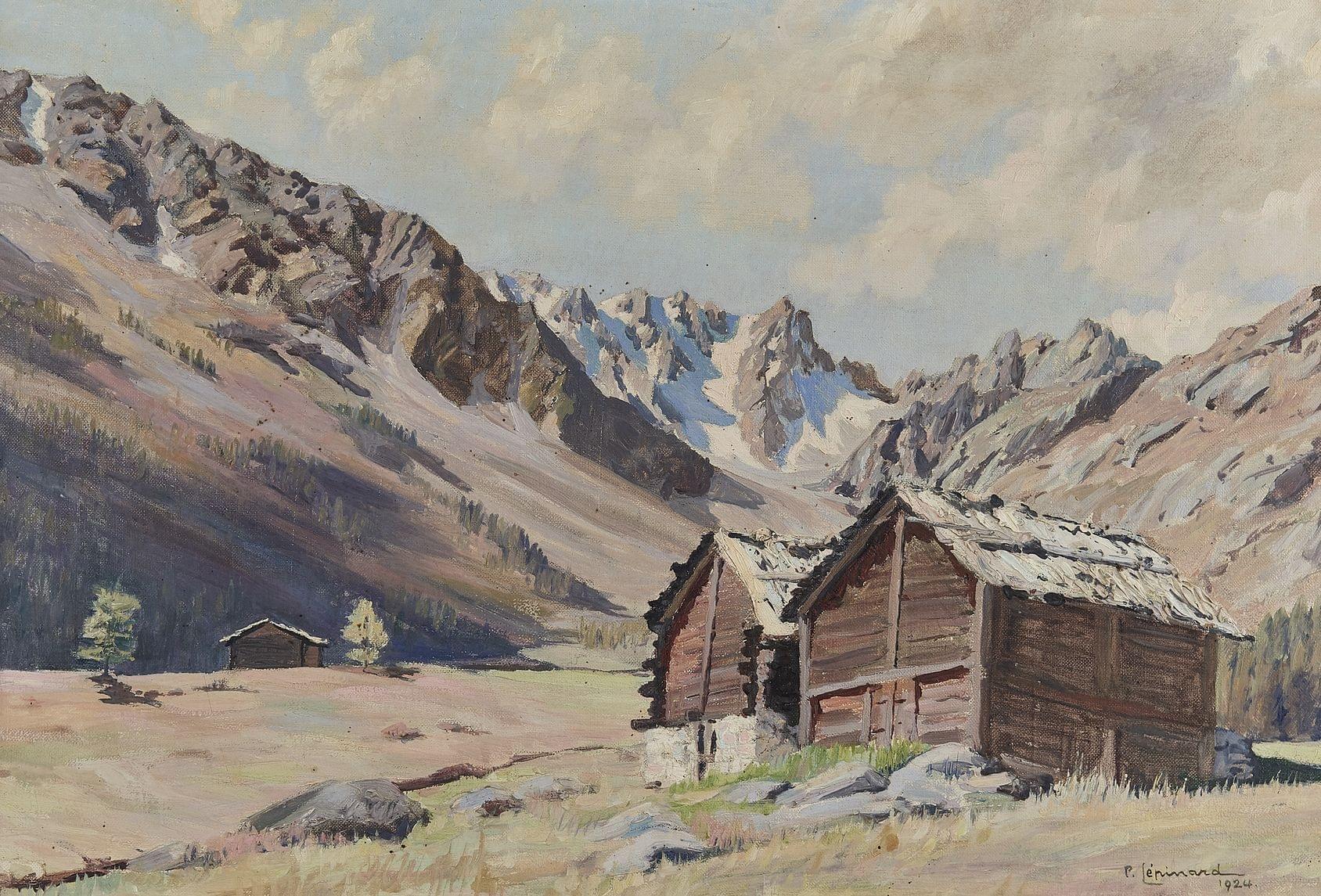 Chalet dans les Alpes, huile sur toile, signée et datée 1924, 33x46 cm