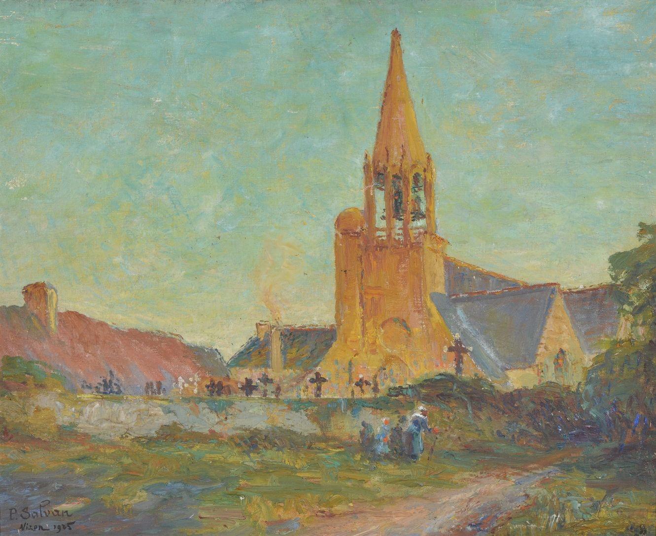 Clocher de Bretagne, huile sur toile, signée, 50x61 cm