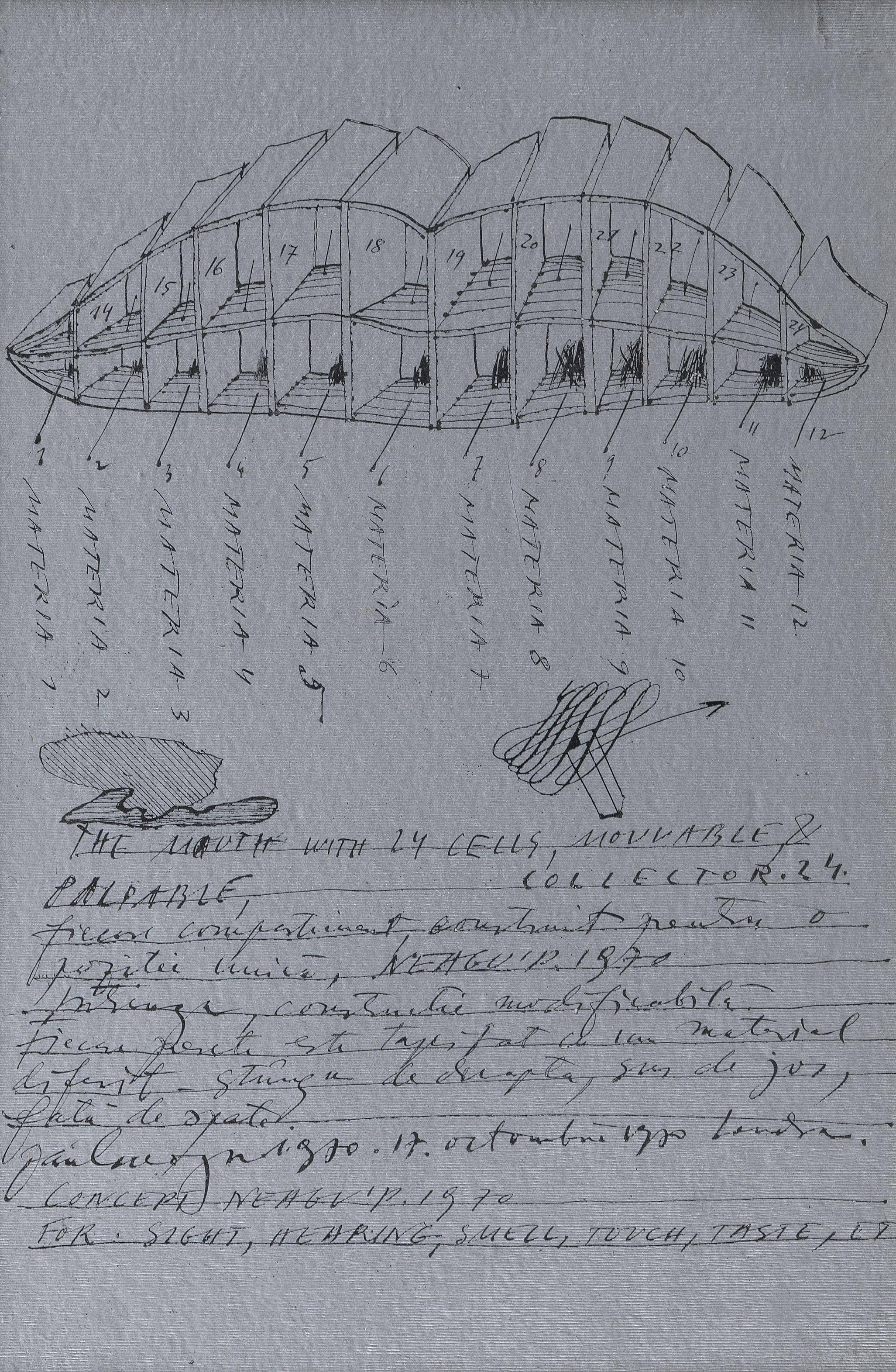 The mouth with 24 cells, encre sur papier, signée et datée, 23x16 cm