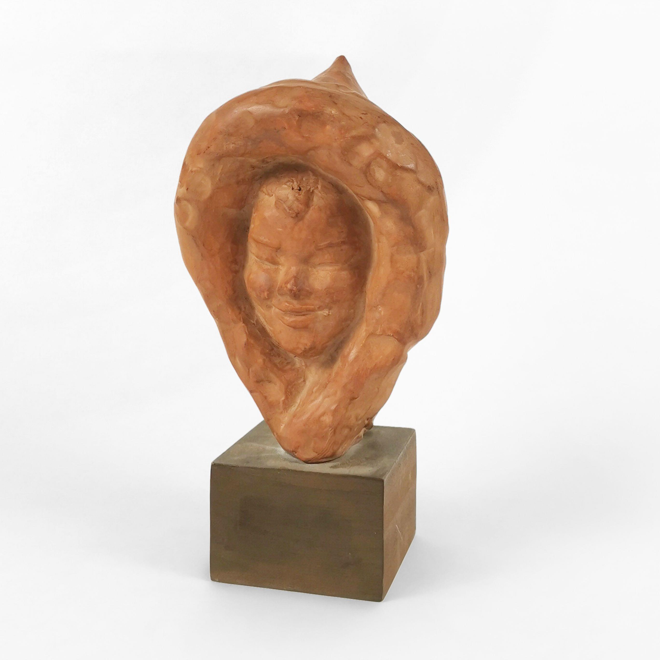 Inuit, terre cuite, signée, H 22 cm