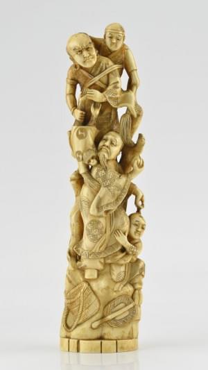 Ivoire marin sculpté, signé, Japon début XXe s, H 31 cm